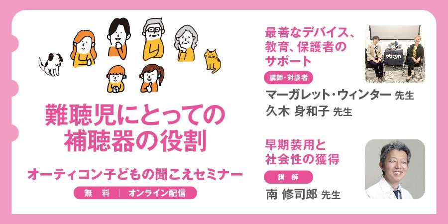 ※第1回『オーティコン子どもの聞こえセミナー』動画、難聴児にとっての補聴器の役割―社会性の獲得―(講師:東京医療センター耳鼻咽喉科科長、南修司郎先生)もオーティコン公式YouTubeにて6月6日補聴器の日より、同時にご視聴いただけます。