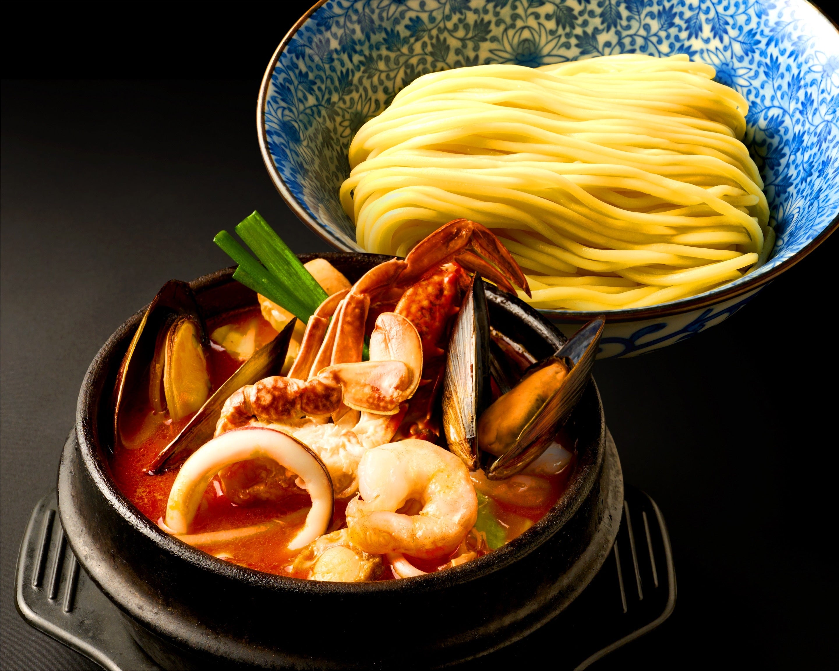 韓国発祥である海鮮と野菜の旨味たっぷりの旨辛麺を三ツ矢堂製麺の自家製麺でお召し上がりいただきます