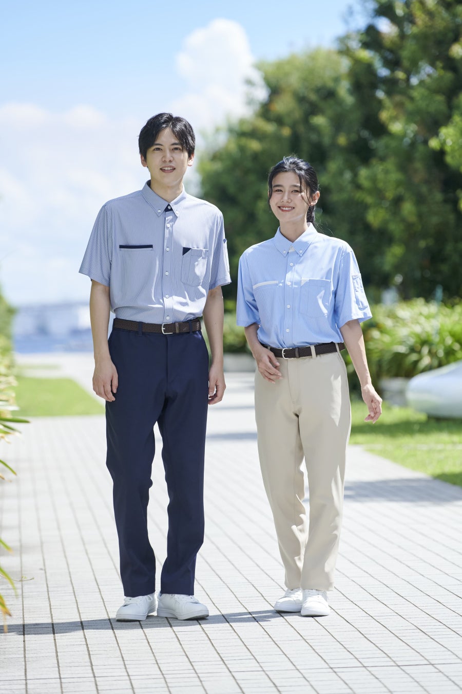 生地開発、製品化まで約2年。猛暑・人手不足・経費削減など企業が抱える課題をユニフォームで解決できるオリジナルシリーズ。スタイリッシュなデザインと快適な着心地のニットシャツとパンツがデビュー!