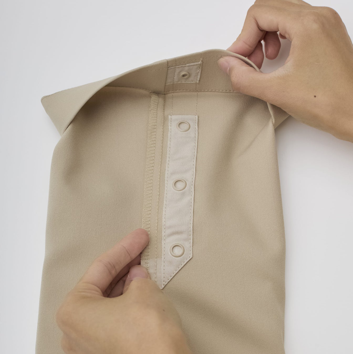個人のサイズに合わせてスナップボタンを留めるだけ!