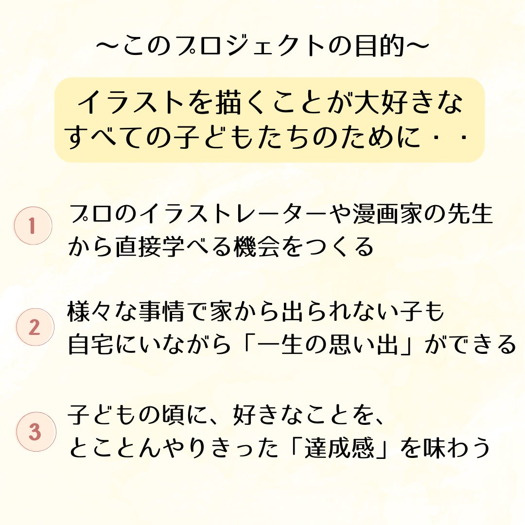 一人でも多くの「絵を描くことが好きな子どもたち」に、このワクワクする機会を届けたい!と考えています。