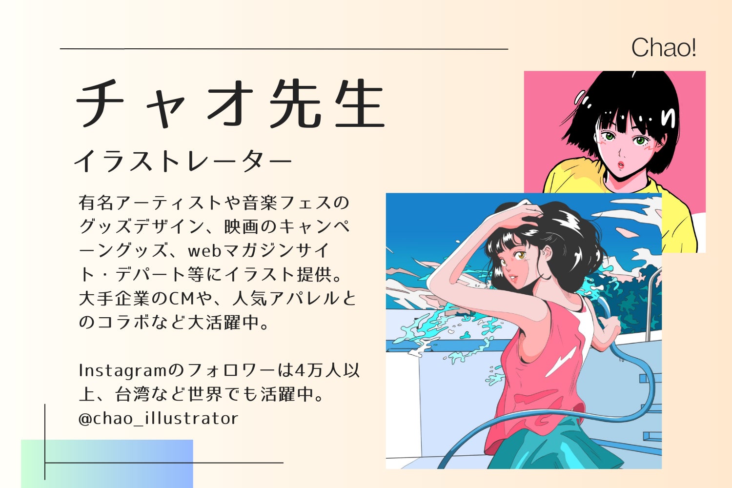 有名アーティストやメーカーとのコラボもしている世界的に有名なイラストレーターでありながらも、子どもたちの無理難題にも一生懸命応えてくれるとっても優しい「チャオ先生」