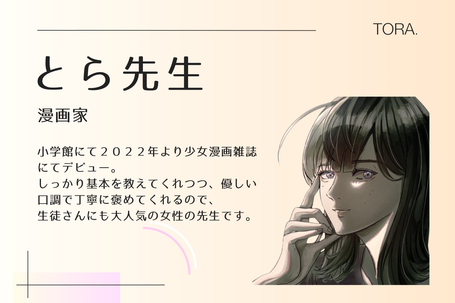 少女漫画家でいつも優しい丁寧な指導が大人気の「とら先生」