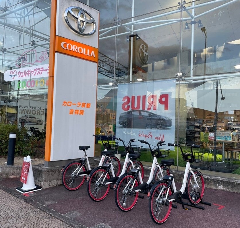 同プロジェクトは、地域のみなさまとお客様をつなぐ事でたくさんのご縁をつくり、これからの京都を一緒につくっていく活動です。Clew社ではシェアモビリティサービスを通じてまちの未来をつなぎ、地域と共存し、環境にやさしく、まちに賑わいをつくるサービスを推進しております。同プロジェクトのテーマである「想い」と共通点があり、双方協力して共に京都を盛り上げていくため、第一弾としてトヨタカローラ京都 吉祥院店にシェアモビリティサービス専用の駐輪スペース(以下、「ポート」)を導入する運びとなりました。