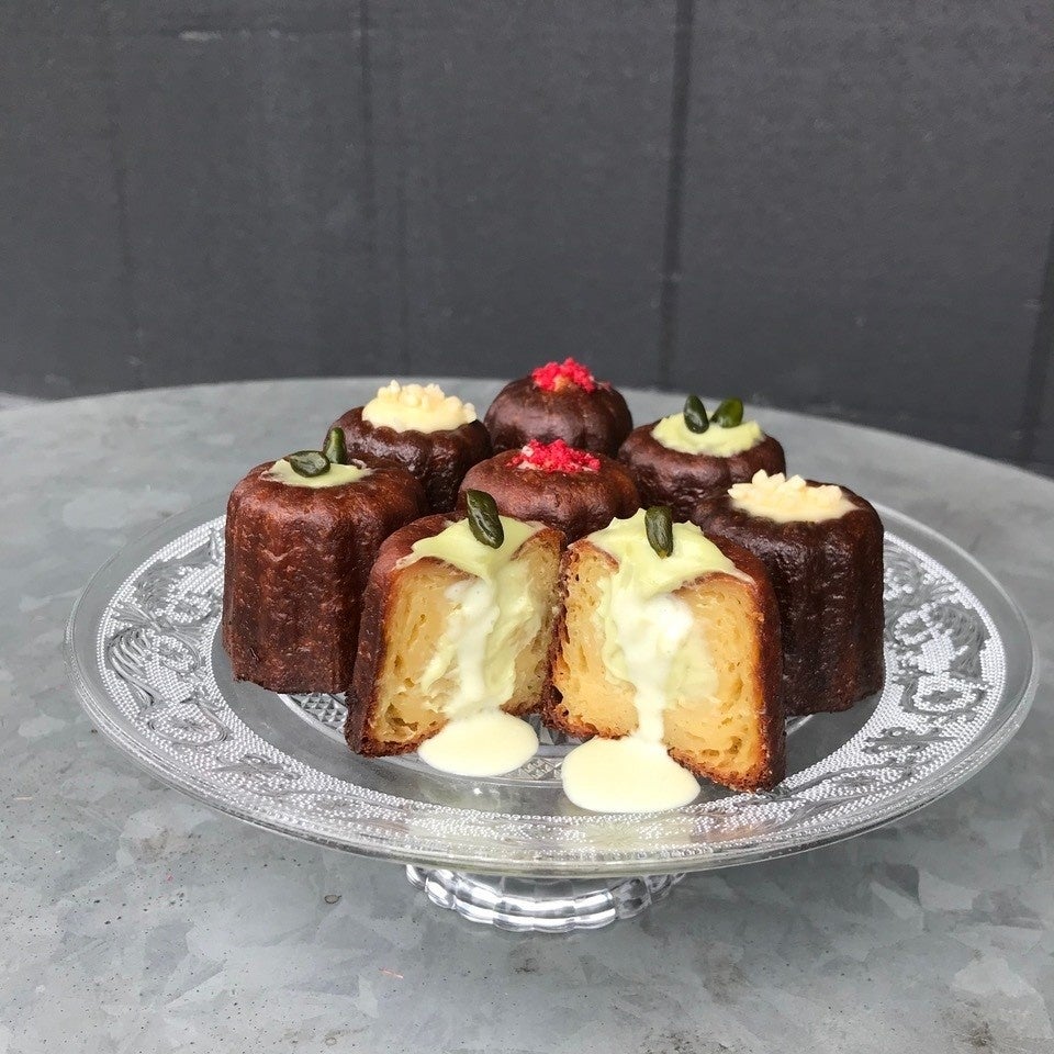 丁寧に焼き上げたカヌレの中にたっぷりクリームを詰めた「生カヌレ」。