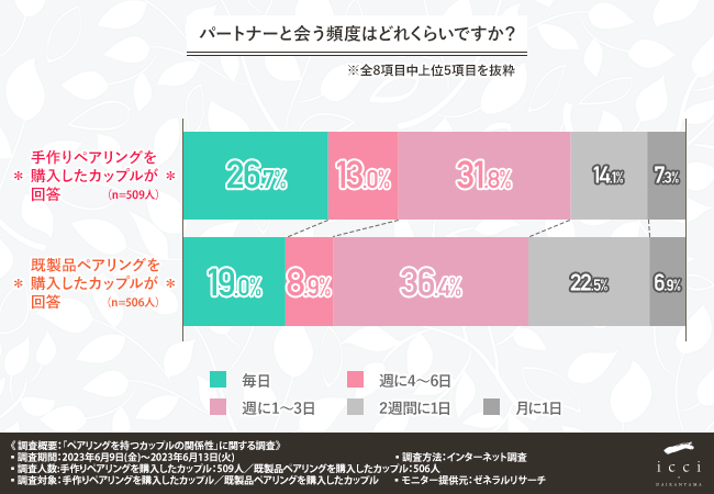 パートナーと会う頻度やデートの頻度は手作りと既製品ペアリングで違いがある?