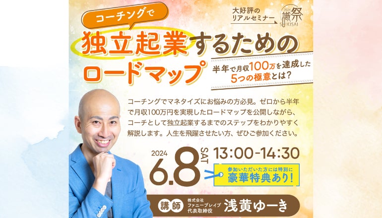 【6月8日(土)無料セミナー】『コーチングで独立起業するためのロードマップ~半年で月収100万を達成した5つの極意とは~』を積水ハウスSUMUFUMU TERRACE池袋で開催
