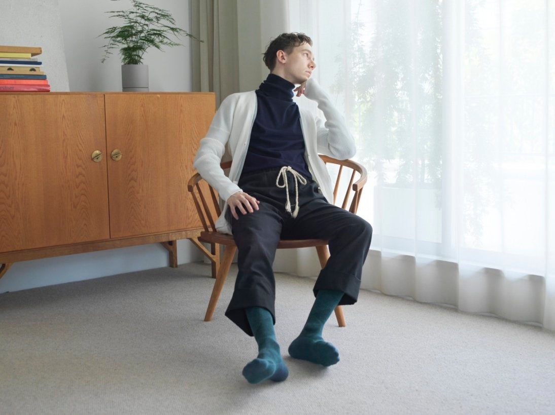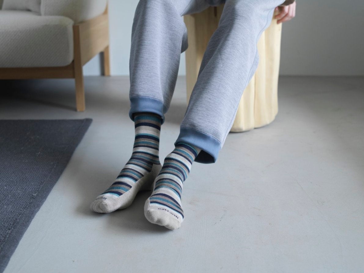 一年を通して快適に使用できる高い機能性を持つメリノウールをベースに、サスティナブルなバンブー(竹)やアルパカをブレンドしたオリジナル繊維を紡ぎ、より良い履き心地のソックスに仕上げました。ウールは動物福祉という考えのもとで飼育された羊から調達。生産過程でも糸の染色に使用する水や、Repreve®と呼ばれる消費前の繊維廃棄物から作られたリサイクルナイロンに移行するなど環境への配慮を行い創業当初から「地球にとって一番良いことは何か」を最優先したモノづくりをおこなっています。