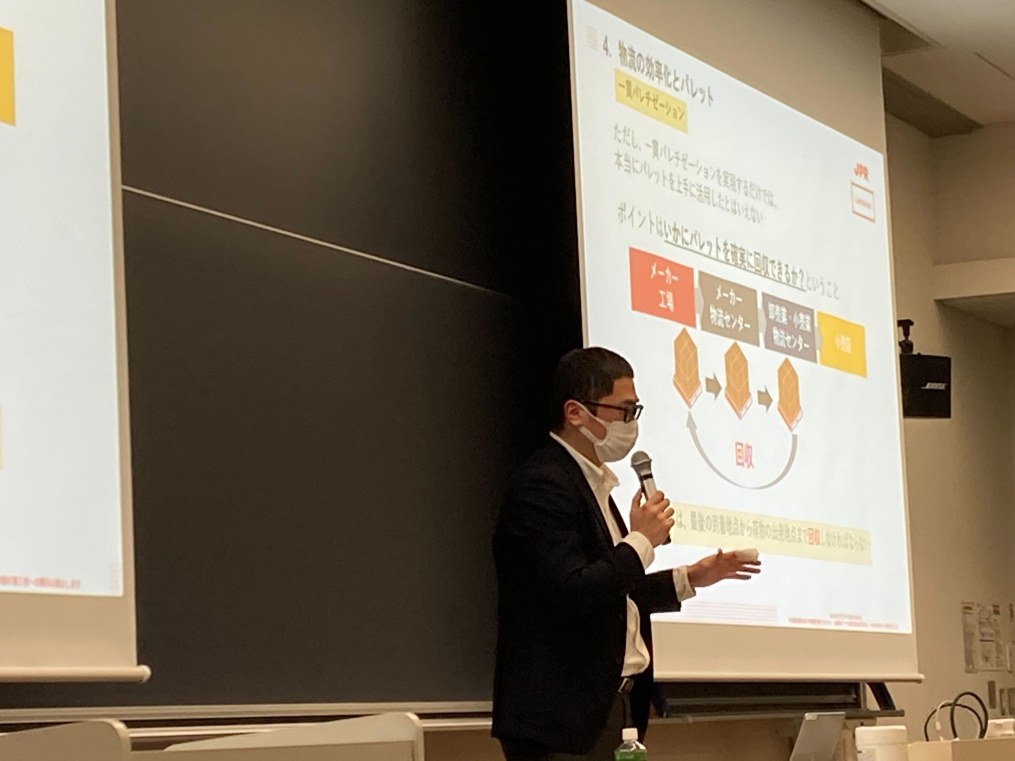 JPRでは、広くパレットについて知っていただくことや、次代を担う人材に関心をお持ちいただくことを目的に、加盟する業界団体の活動を通じて、あるいはJPR独自の活動として、大学等でパレットに関する講義や講演を行っています。
