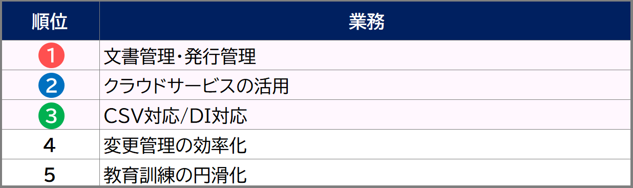 紙での管理が大半を占めているという会社から、既にシステムを導入済だがさらにより良い品質管理業務の運用を目指している会社まで、現在の状況はさまざまですが、これらの課題は業界各社に共通しているようです。
