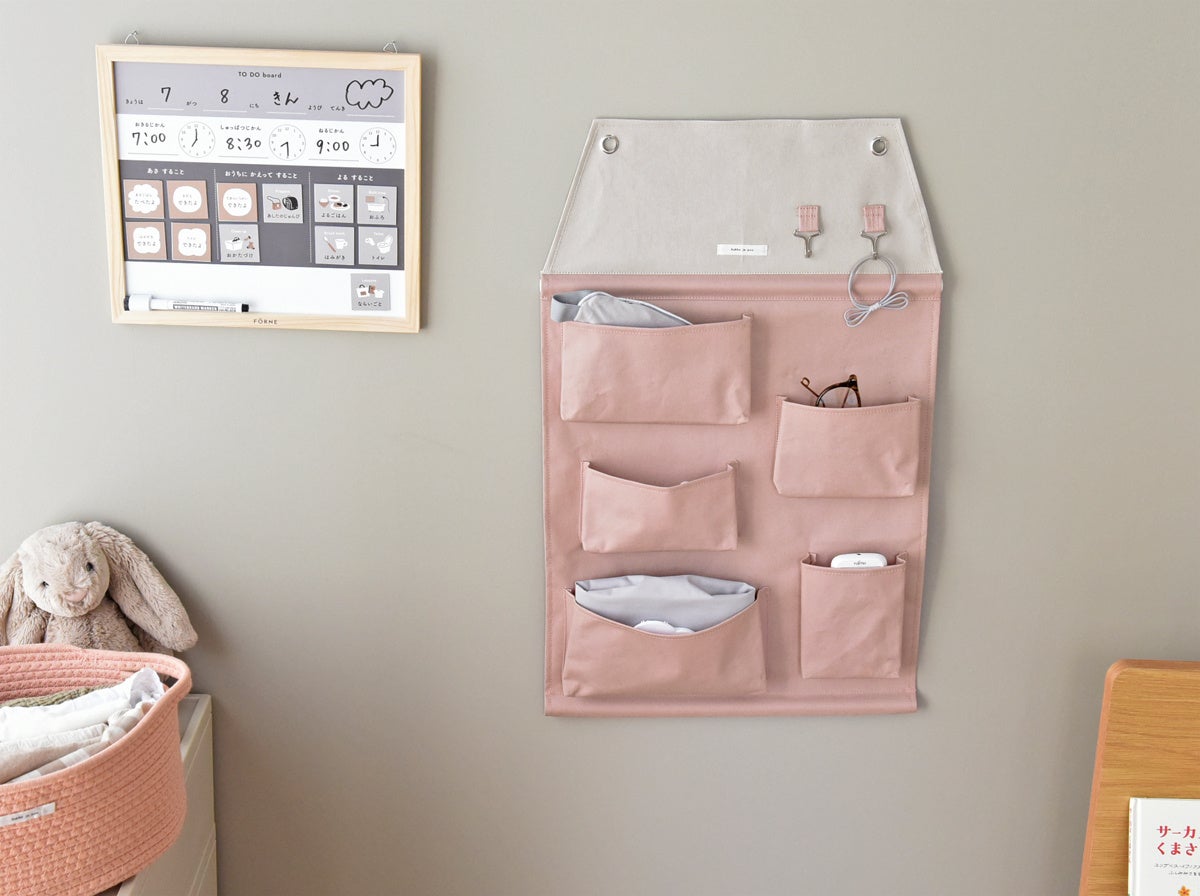 お片付けが苦手な子どもも、入れるだけのウォールポケットなら使いやすさ◎。