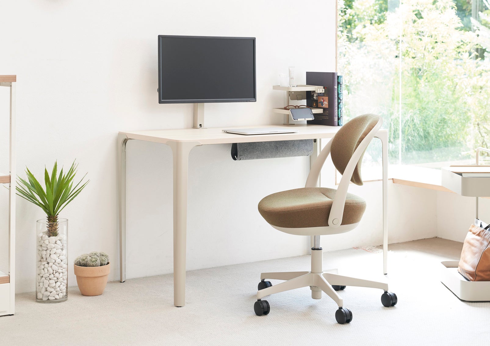 機能性と安全性を兼ね備えた、家のインテリアになじむナチュラルなデザインの在宅ワーク向けファニチュアです。オフィスと変わらず快適に働けるようコンパクトながらも優しく包み込むような座り心地を実現します。張材が防汚加工でメンテナンスがしやすいタイプや、座面カバーを取り外して洗濯できるカバーリングタイプがあります。機構部を樹脂カバーでふさいでいるため、子どもが手で触れても安心です。