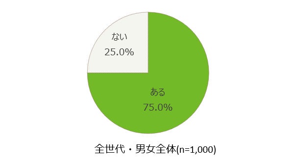 全体の75%が仕事や家族、自身の悩みありと回答。一方「不安・ストレス・悩みを誰かに相談する」は51.7%にとどまる