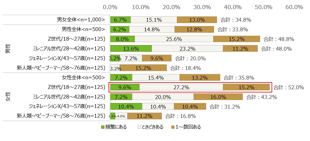 カウンセリング経験は全体の34.8%、Z世代女性で52.0%と最も多い結果に