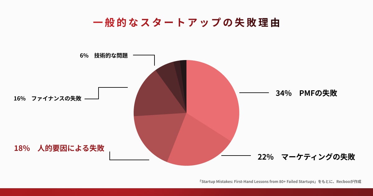 2024年のMr.Kotashev(フリーランスのコンテンツマーケティングコンサルタント兼スタートアップの創設者)による調査にて、アメリカで倒産したスタートアップの内、18%が人材不足による知識の欠如、モチベーションの低下といった人的要因によって倒産していることが分かりました。(※7)