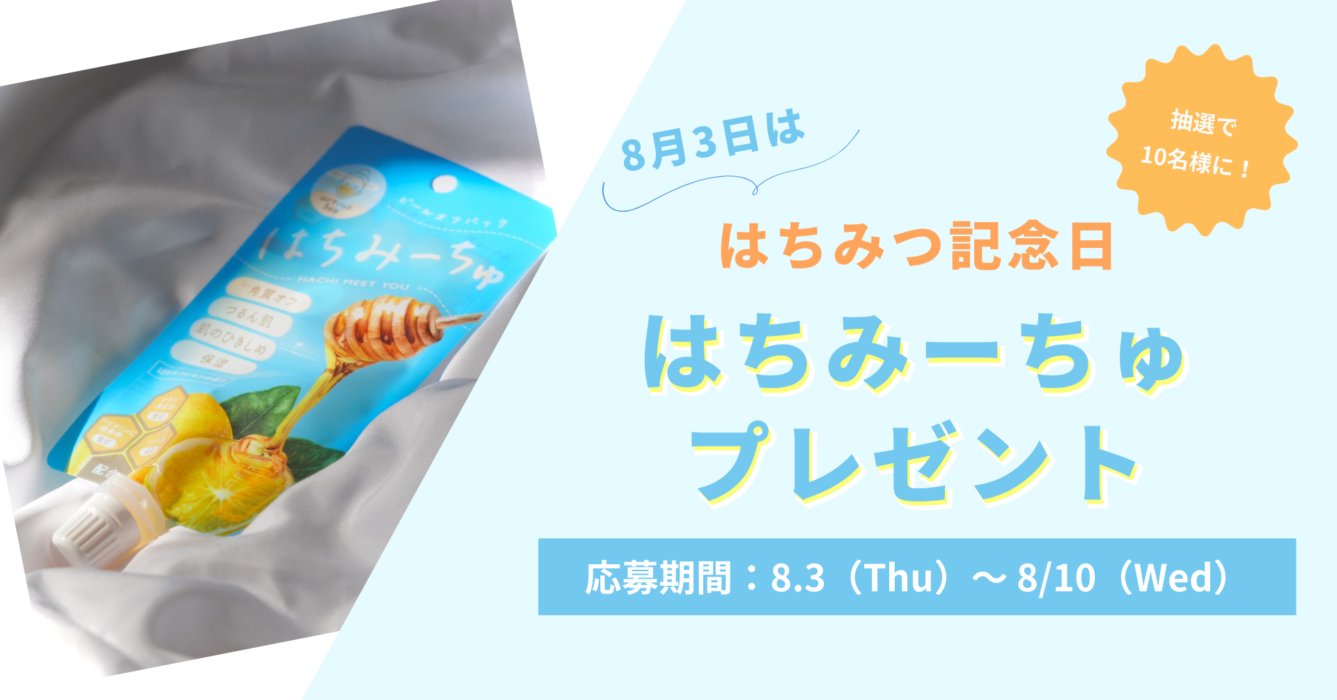 全日本はちみつ協同組合と日本養蜂はちみつ協会が制定した「はちみつの日」を記念して、濃密なはちみつが配合されたピールオフパック「はちみーちゅ」を抽選で10名様にプレゼントをするキャンペーンを行います。