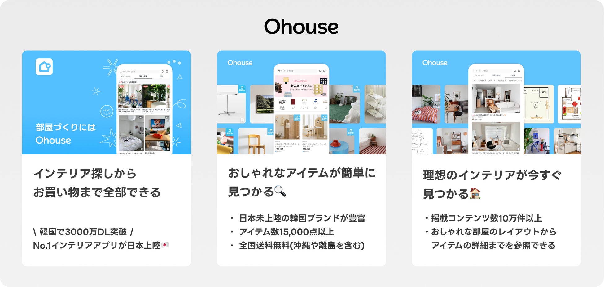 「오늘의집(オヌレチプ)」の日本版サービス「Ohouse(オーハウス)」は2022年にローンチし、直後に50万ダウンロードを達成。450%以上の成長を遂げ、2024年10月にEコマースをスタート。現在は取り扱い商品数10,000点以上と、韓国のインテリアブランドのECサイトとして最大級の規模で提供しております。