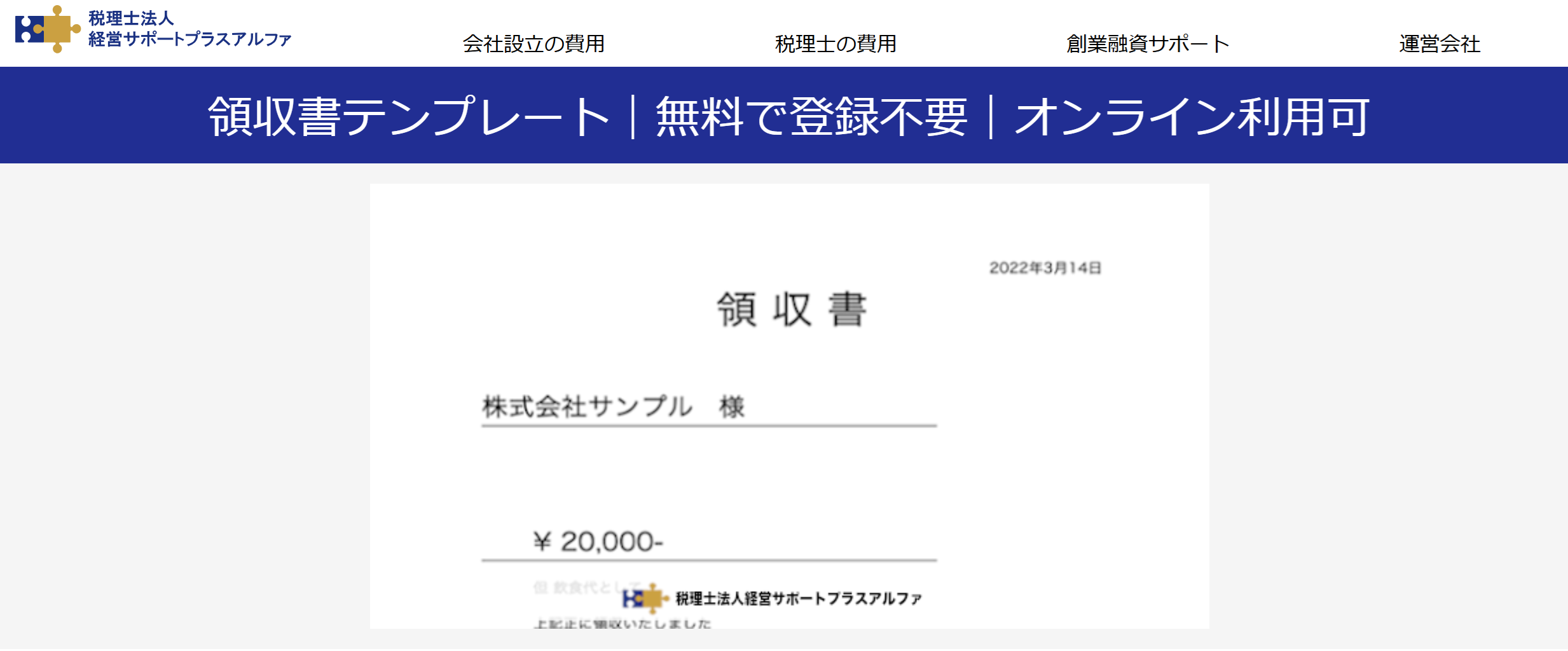 領収書のオンライン作成なら経営サポートプラスアルファの「領収書テンプレート」