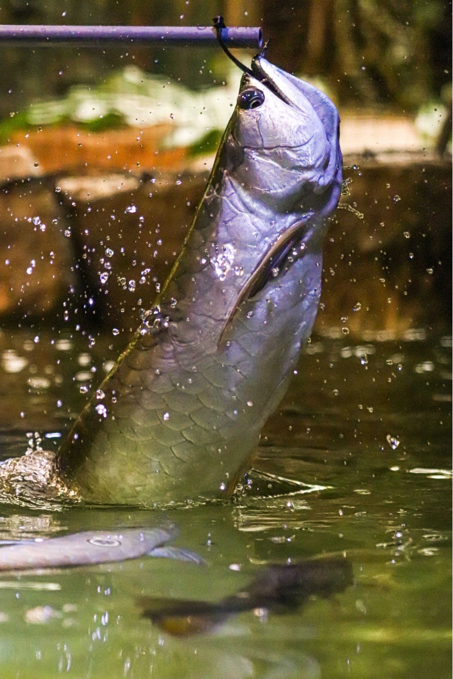 アロワナの力強いジャンプを実際にご覧いただけます。