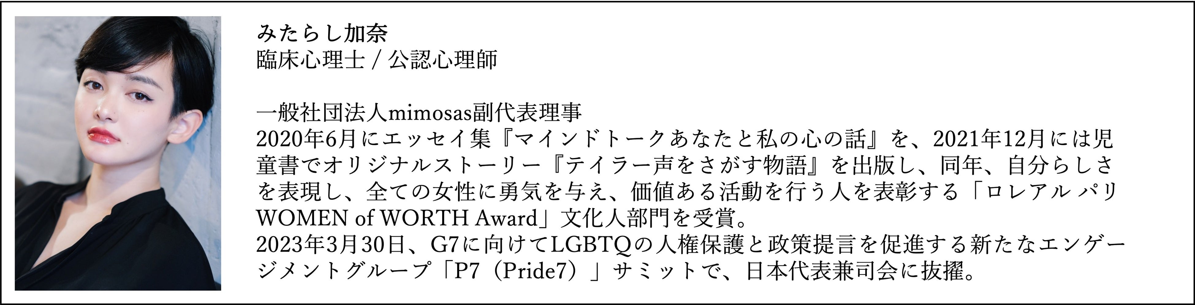 当イベントでは、LGBTQ+の人たちの現状とこれから私たちが目指す未来について、LGBTQ+当事者とLGBTQ+理解者・支援者「アライ(Ally)」の両方の立場の5名の登壇者にお話を伺います。