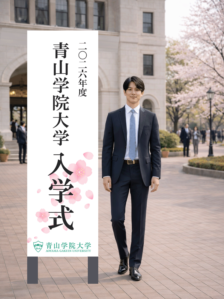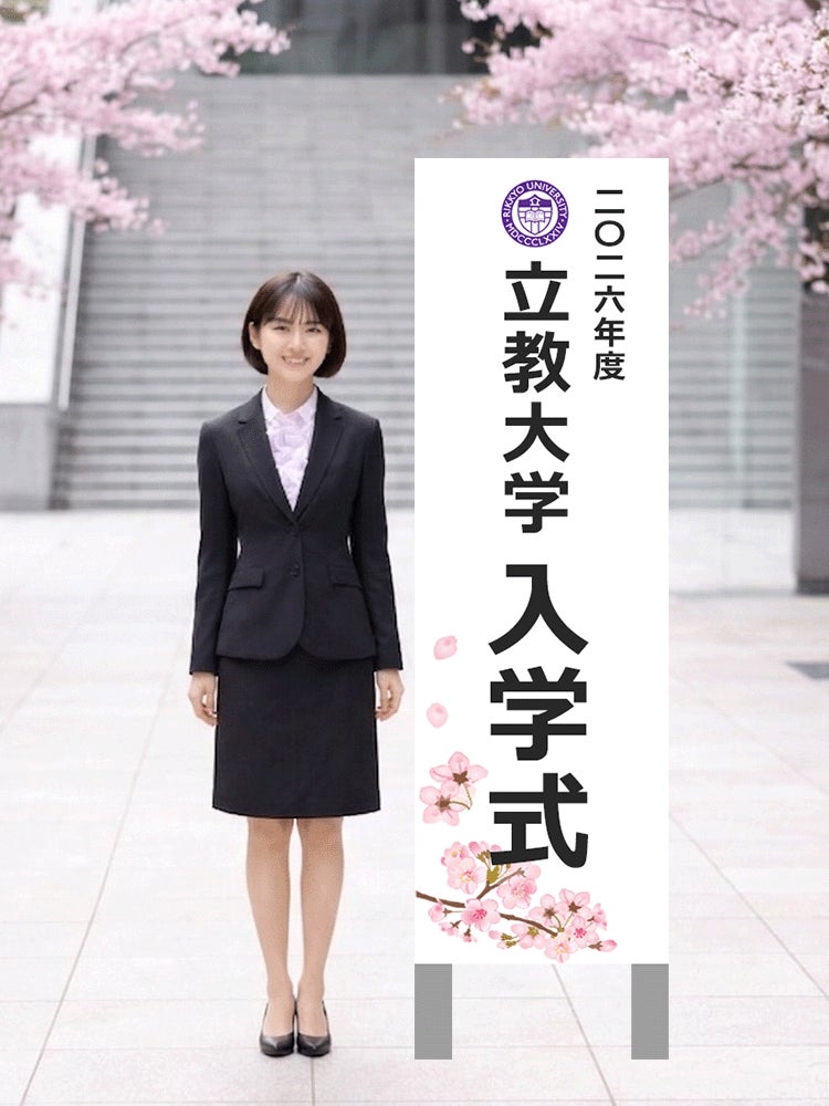 一生に一度の晴れ舞台である入学式において、式典名称の入った「立て看板」前での記念撮影は定番の光景です。しかしながら、Z世代である学生の式典体験が多様化する一方で、卒業式と同様、従来の入学式における「記念立て看板」での撮影は、混雑や待ち時間の長さ、撮り直しが難しいといった課題を抱えていました。特に入学式においては、保護者の参加もあり、卒業式の記念立て看板撮影と比べて、より混雑や待ち時間の長さが問題となっております。