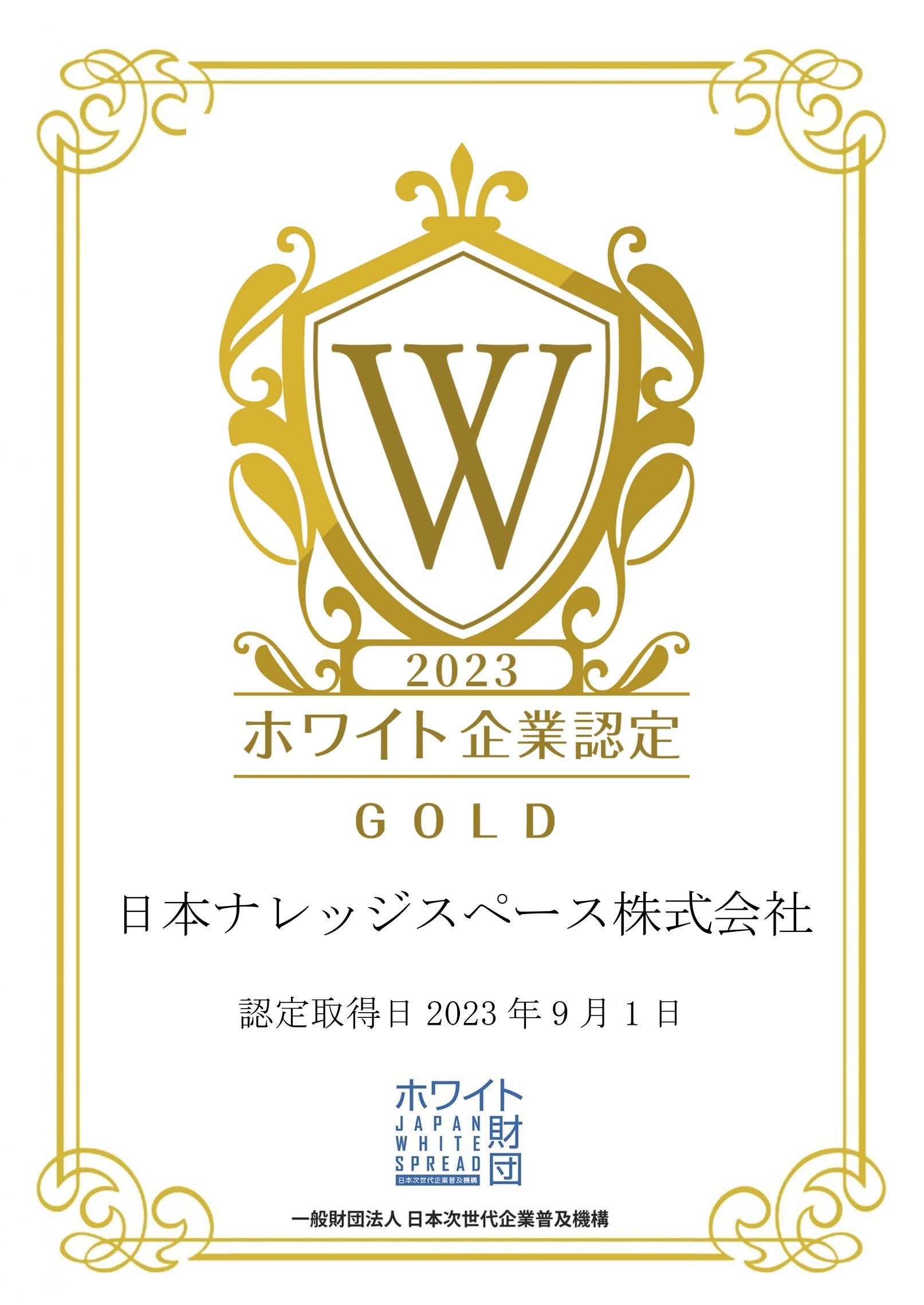日本ナレッジスペース株式会社、2年連続 で「ホワイト企業」に認定