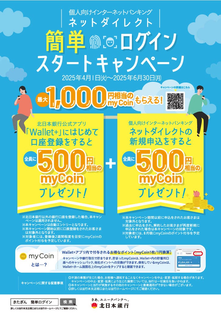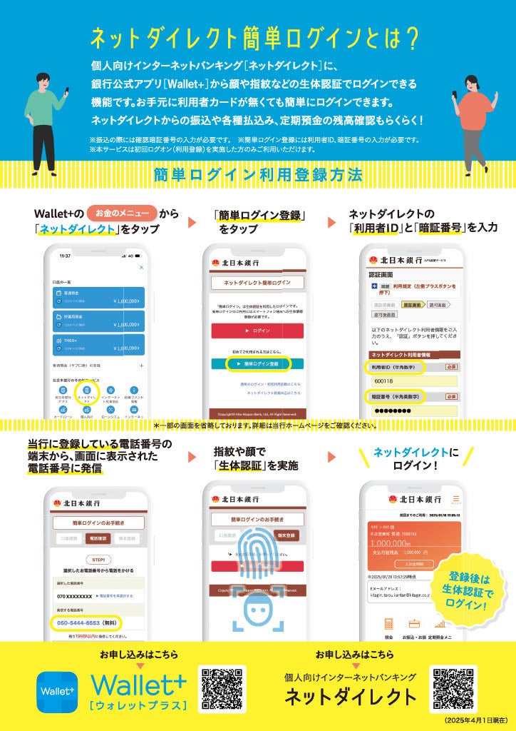 株式会社北日本銀行(頭取 石塚 恭路)では、2025年4月1日(火)より、「ネットダイレクト簡 単ログインスタートキャンペーン」を下記の通り実施いたします。