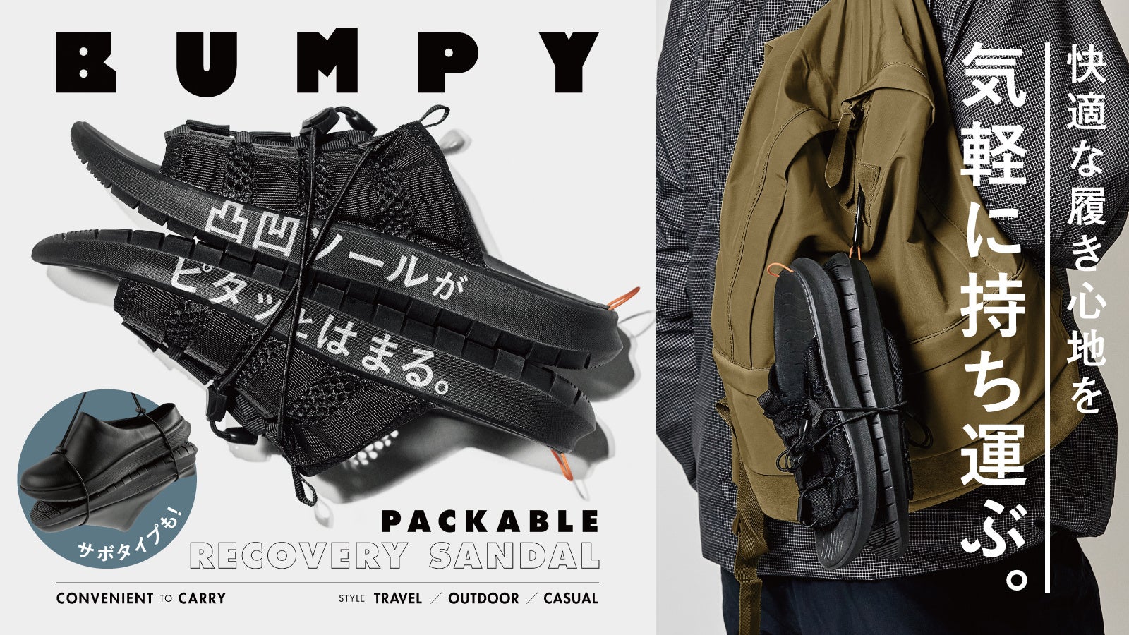 凸凹ソールがピタッとはまって気持ちいい。持ち運びに特化した新感覚のリカバリーサンダル『BUMPY』