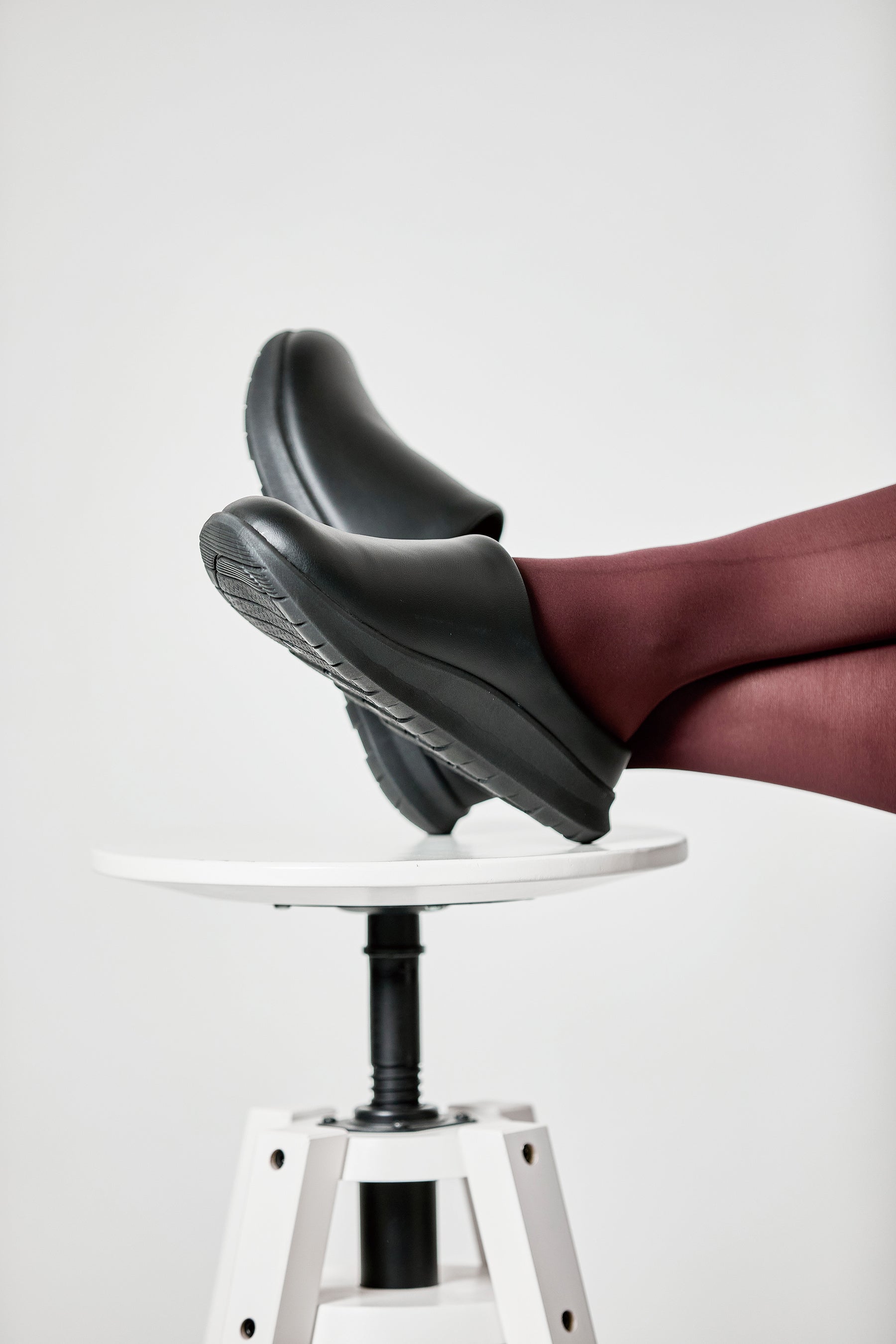 『バンピーサボ』は、高級感のあるフェイクレザーのアッパーとミニマルなデザインでキレイ目なファッションにもマッチする、サボタイプのリカバリーサンダルです。普段履き・オフィス履き・室内履きなどなど、使用シーンを選びません。持ち運びに便利なシューズホルダー付き。