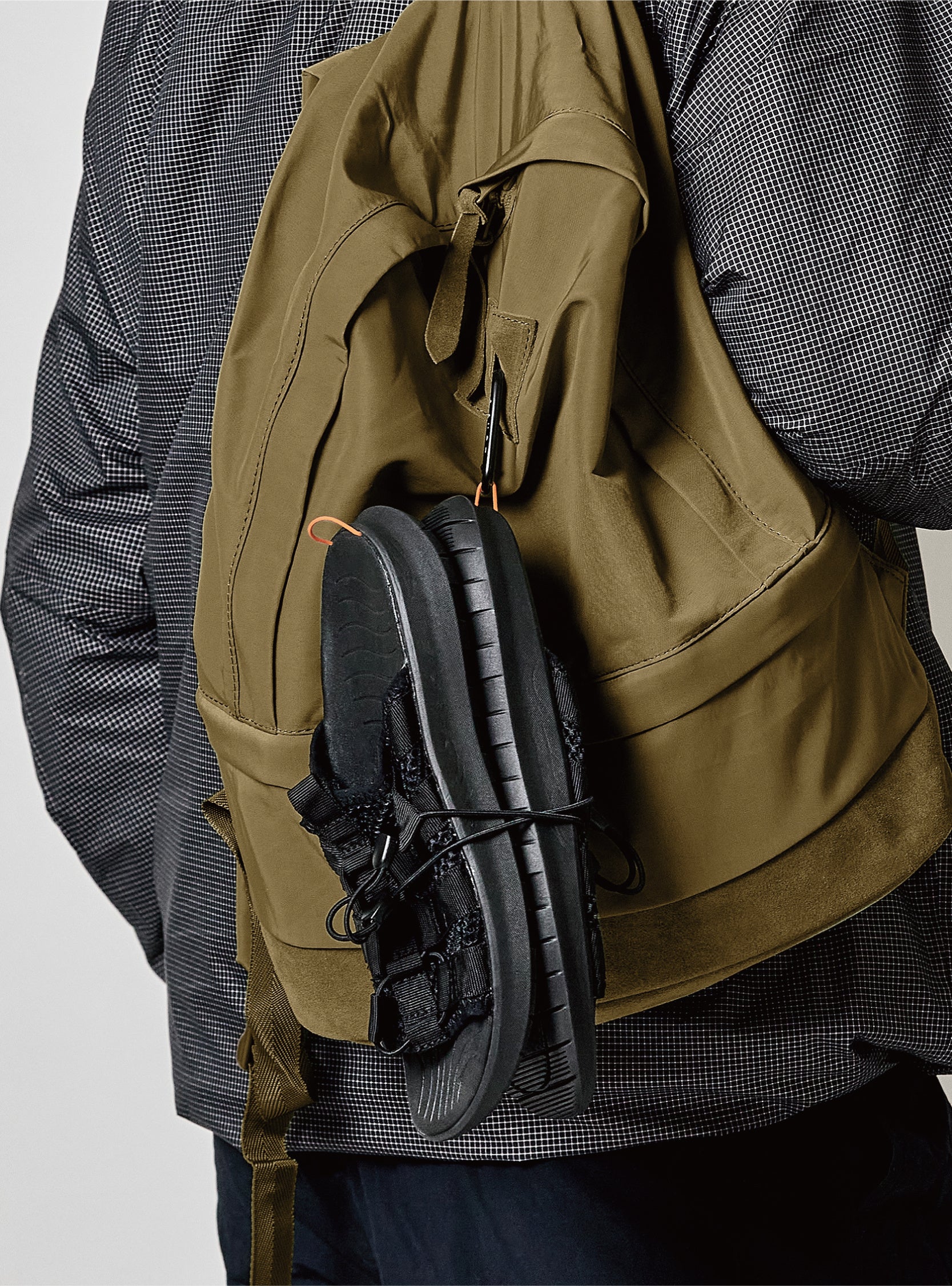 『バンピーパッカブル』は、サイズ調整用のドローコードを使ってワンタッチでコンパクトにできるリカバリーサンダルです。かかとのストラップを使って鞄等にも取付可能。ソール同士が重なるので汚れが気になりにくいのも嬉しい特徴です。