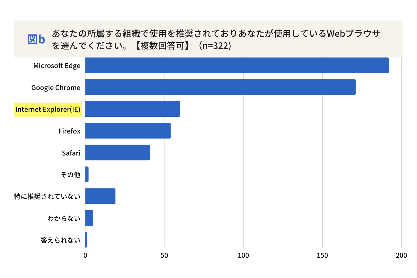 ・サポート終了の「Internet Explorer (IE)」が組織で推奨されているWebブラウザ第3位にランクイン