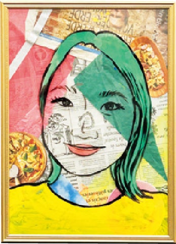 チラシ、新聞、雑誌、包装紙などを自由に組み合わせたコラージュに、自分の顔をデフォルメし好きな色を塗って、ポップ・アートな自画像を作ろう!