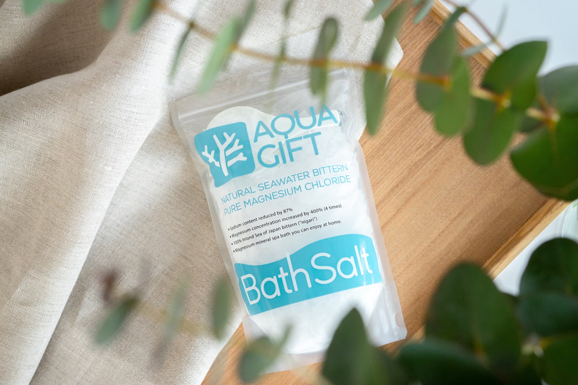 そこで、AQUAGIFTは保湿に特化したこれまでの塩化マグネシウム100%の入浴剤に加え、より塩素除去効果を高めた、塩化マグネシウム×ビタミンCのこれまでに無い入浴剤を開発しました。