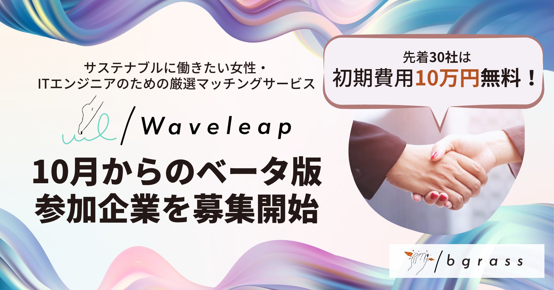 サステナブルに働きたい女性・ITエンジニアのための厳選マッチングサービス「Waveleap」10月からのベータ版参加企業を募集開始