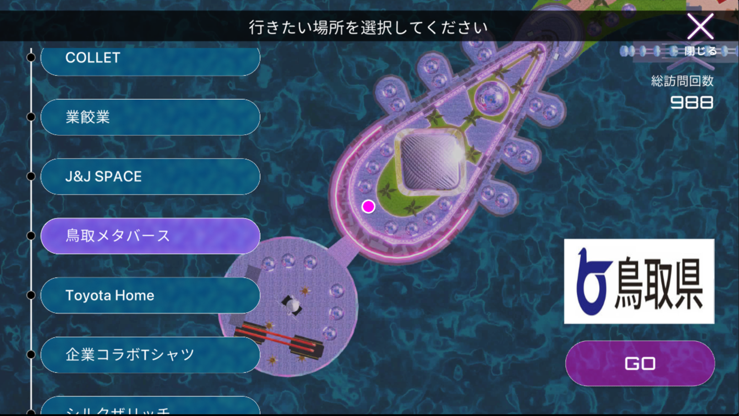 ③ 「鳥取メタバース」を選択し「GO」をタップ