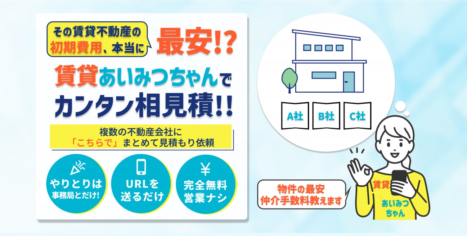 株式会社アシストは6月9日、複数の不動産会社に賃貸物件の相見積もりを依頼できるWebサービス「賃貸あいみつちゃん」を開始しました。無料で複数社の初期費用を比較し、希望条件に合致したところで内見や契約ができます。相見積もりサービスでありがちな「しつこい勧誘や営業」は一切ありません。
