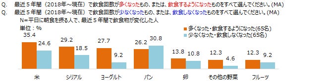 平日の朝食として、米・シリアル・ヨーグルトの飲食回数が増加パンの飲食回数は女性を中心に減少