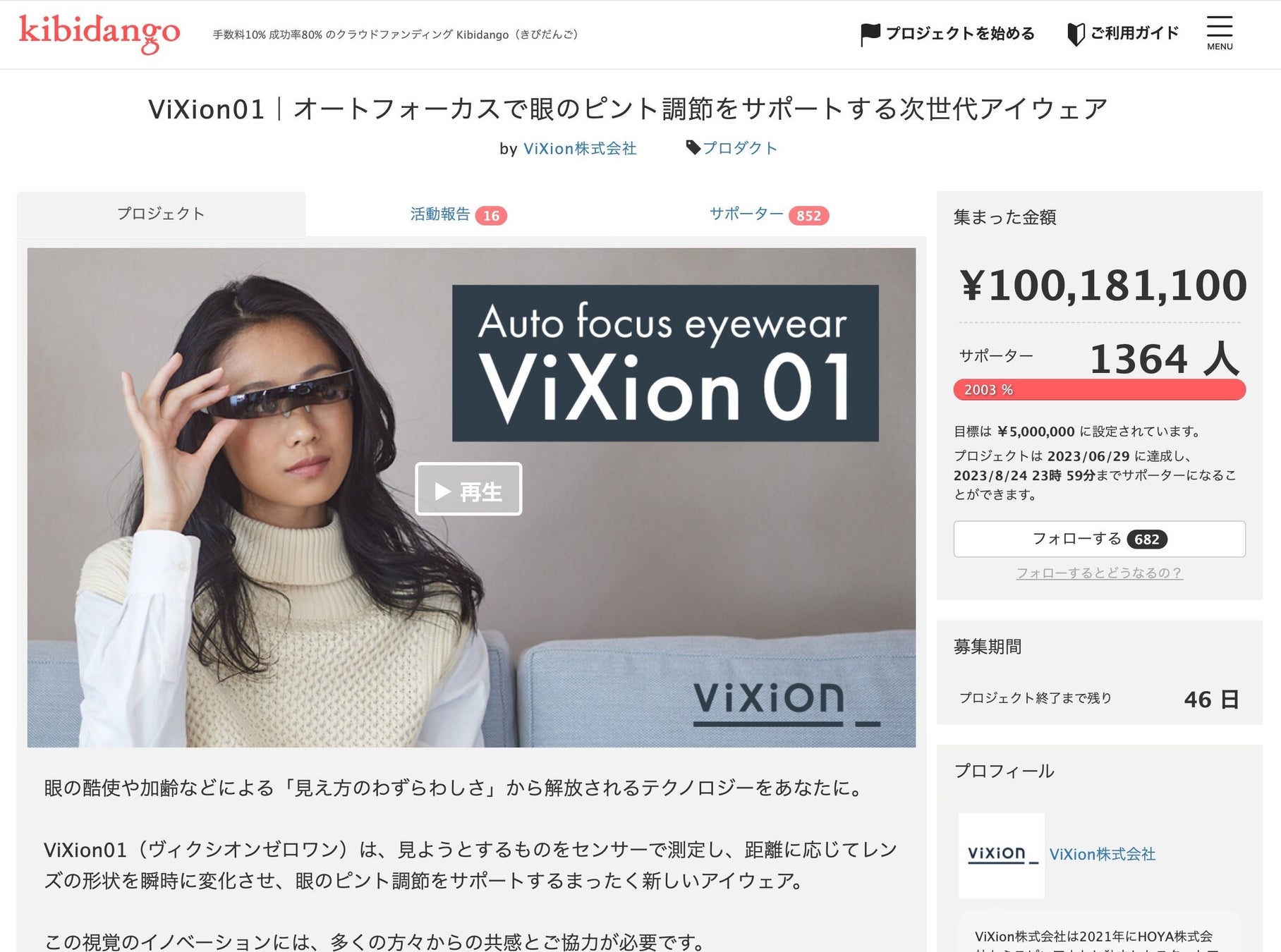 オートフォーカスアイウェア「ViXion01」がクラウドファンディングで1億円突破!