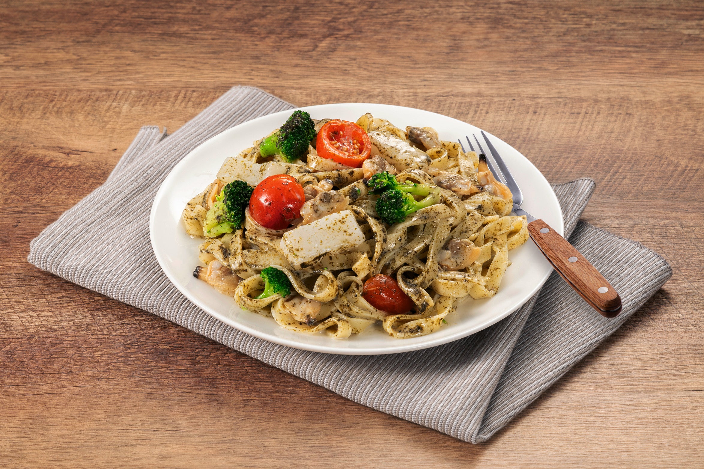 具材には、イカとあさりを中心に、トマトとブロッコリーを加え、海鮮の旨みだけでなく、彩りと食感のバランスにも配慮しました。生パスタ麺にはフェットチーネを採用し、ソースがよく絡む、もちっとした食感を楽しめます。