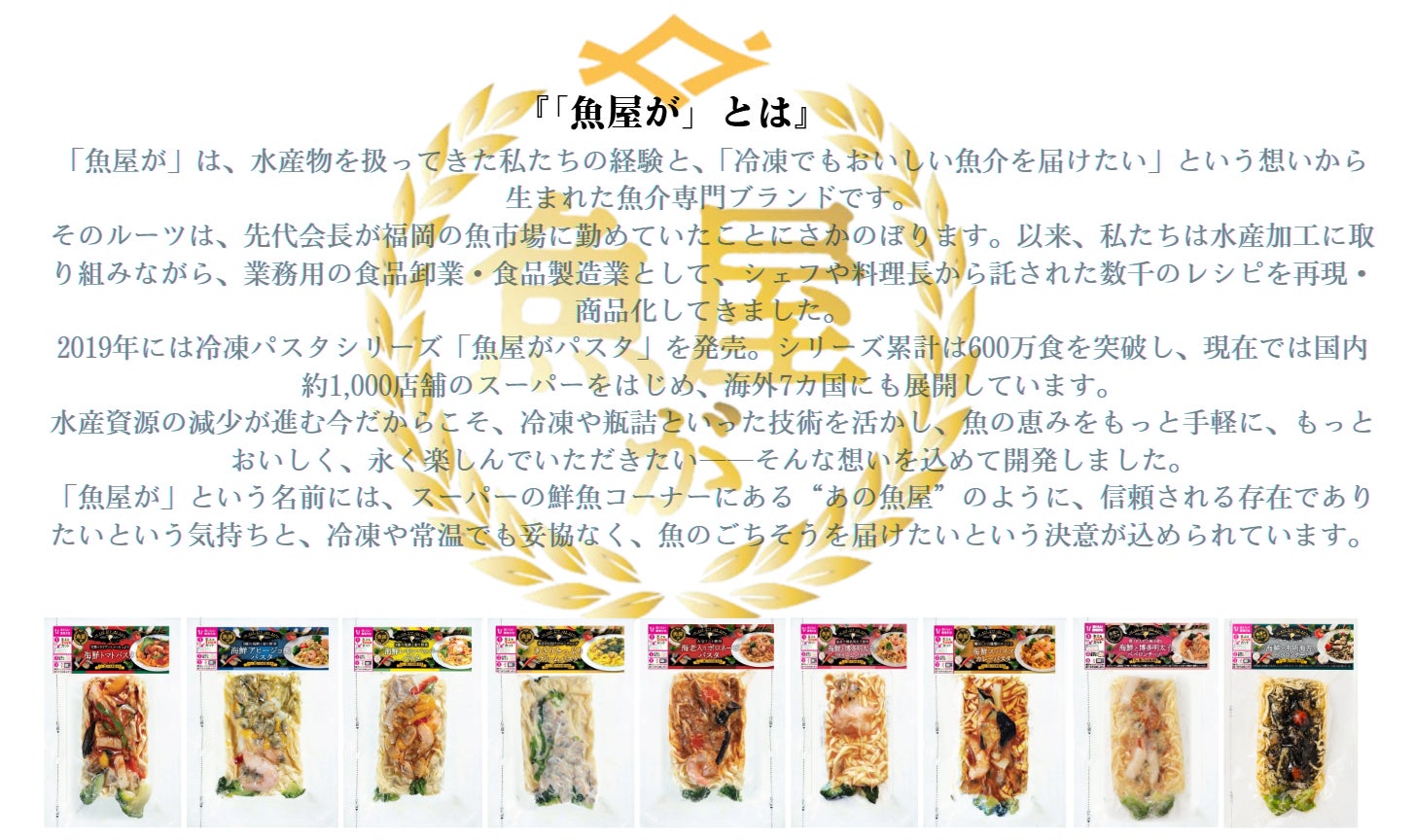 食品卸・小売業および食品加工販売業を営む柳川冷凍食品株式会社(本社:福岡県柳川市、代表取締役社長:藤木尚文)は、「【水産業】だからこそ作れる商品を作りたい」という想いから、本格冷凍パスタシリーズ【魚屋がパスタ】を展開してまいりました。