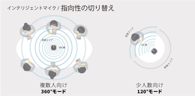 製品正面120度の範囲にいる人の声だけが相手に聞こえます。生活音を聞かせたくないリモートワーク時や少数でのウェブ会議に最適。