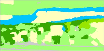 *2 正解率は交差検証の結果であり、学習に用いたデータとは異なるデータを用いて精度を検証している。一般に、画像の領域分割の精度は、面積の大きなクラスに依存する傾向があるが、本モデルでは竹林等の相対面積の少ないクラスにおいても高い精度を保っている。