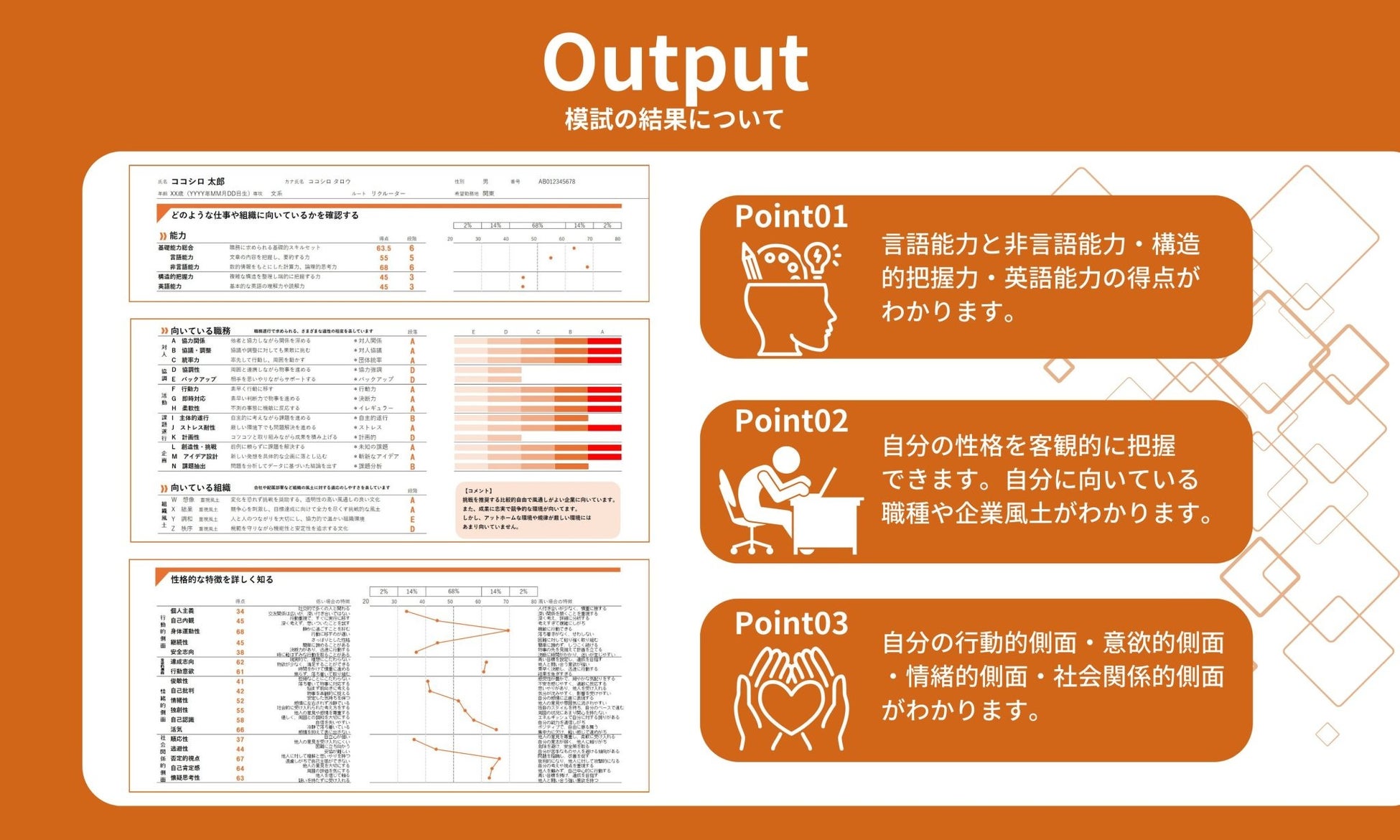 本サービスは、模試結果をもとに次の一手が明確になる機能を備えており、効率的かつ的確な就職活動のサポートを提供します。