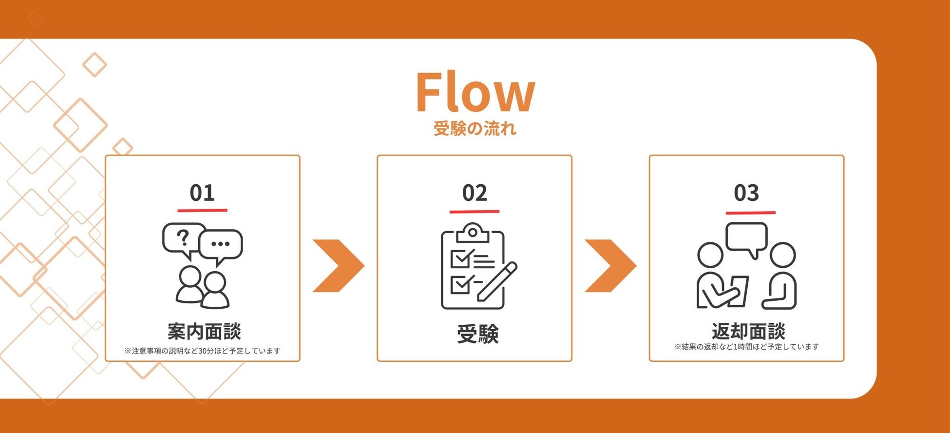 まず、専任スタッフとの面談を行います。サービスの利用方法や注意事項について30分程度で丁寧にご説明します。この段階で疑問点を解消し、安心して受験を進められる準備を整えます。