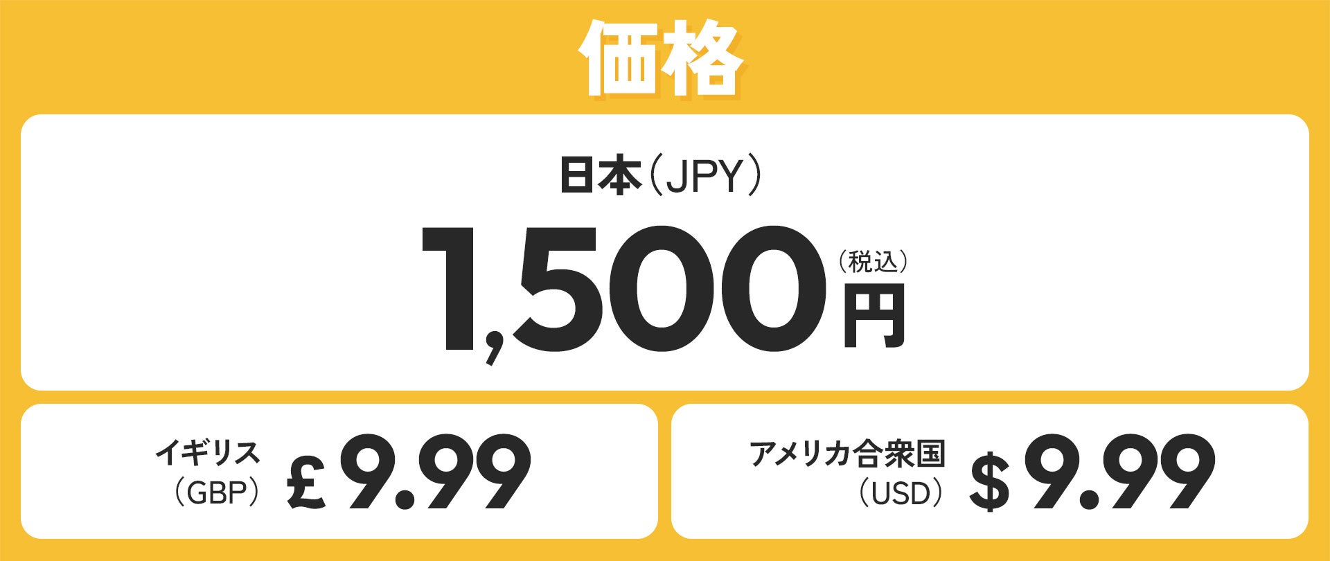 日本(JPY)¥1,500 イギリス(GBP)£9.99 アメリカ合衆国(USD)$9.99