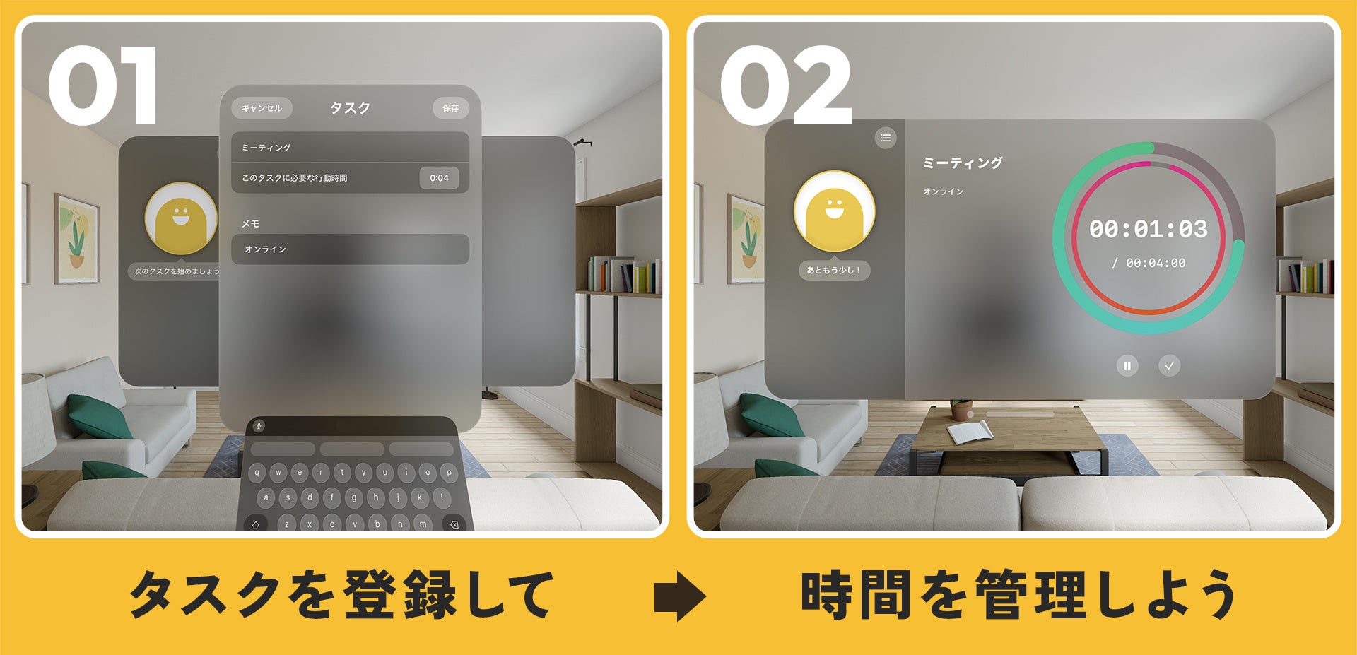 Apple Vision Pro向けに提供される本アプリでは、視覚的に時間を「見える化」し、仕事やプライベートの時間をよりバランスよく、効率的に使うことが可能です。