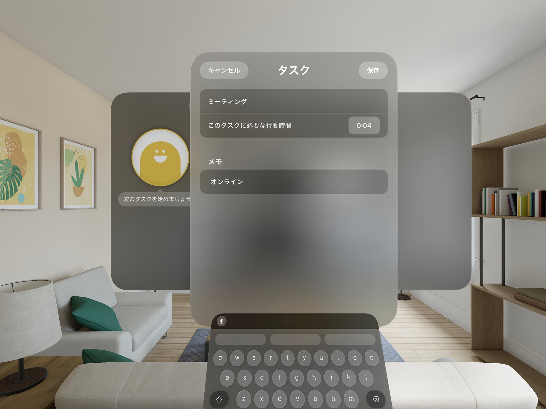 いつもと同じ日常の風景の中をVisionProを通して過ごす時、これまでのようにスマホやモニタに視点を変更することなく、そのままの視界の中にタイムマネンジメントの情報を置き、楽しく時間とタスク管理ができる新しい体験を提供します。