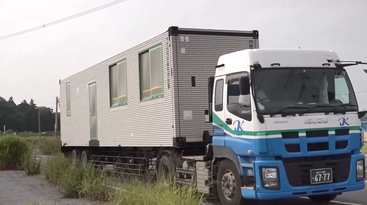 モバイル建築は、工場で製造し完成した建築ユニットをユニット単位でトラック等に積載・輸送し、迅速に建設・移築することを繰り返し行える建築物の総称です。ユニットが規格化されているため、複数のユニットを連結・積層することで、さまざまな間取りや規模、用途、階数の建築物が構成できます。