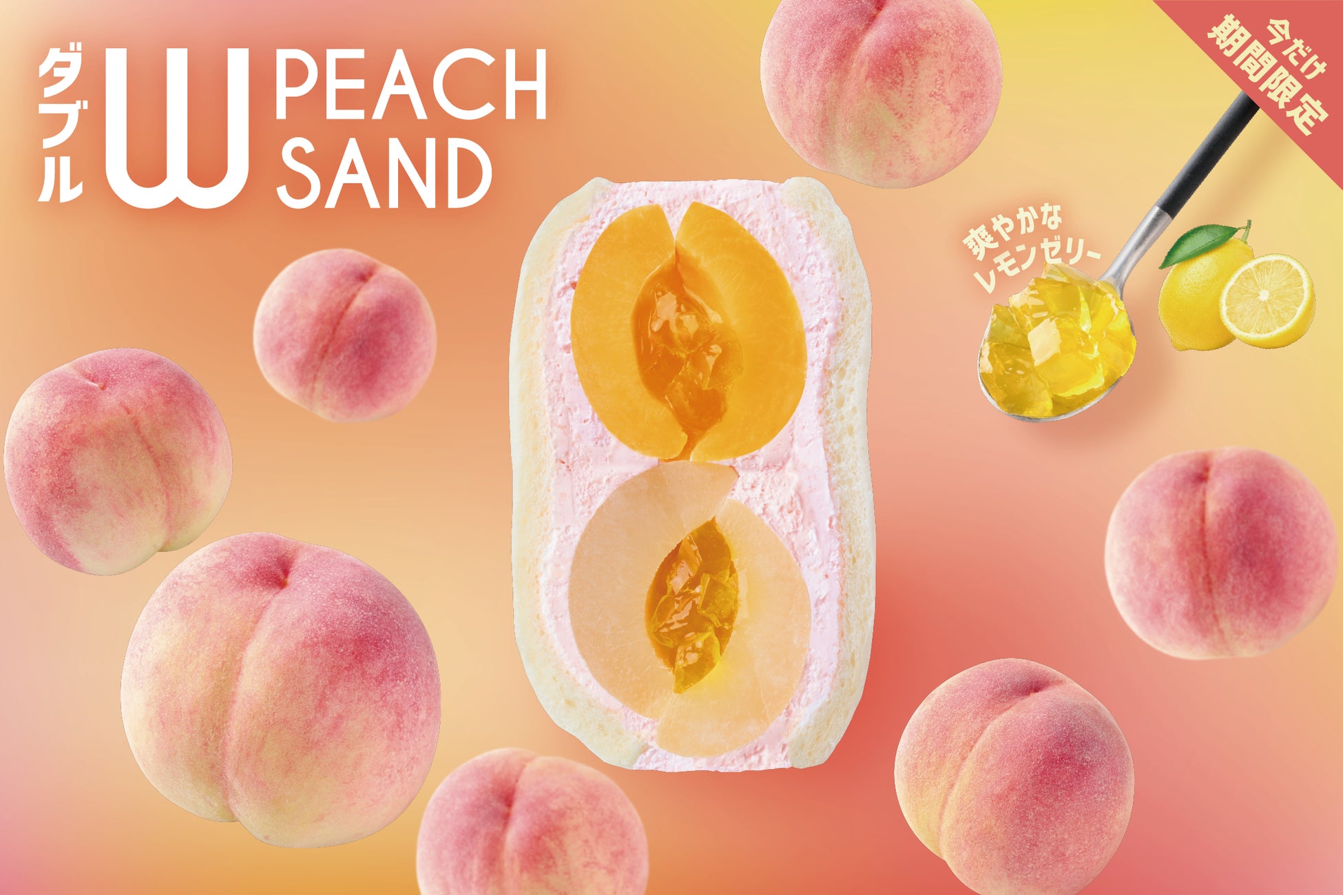 白桃、黄桃の2種類の果肉をたっぷりと贅沢に挟んだ『Wピーチサンド』。
