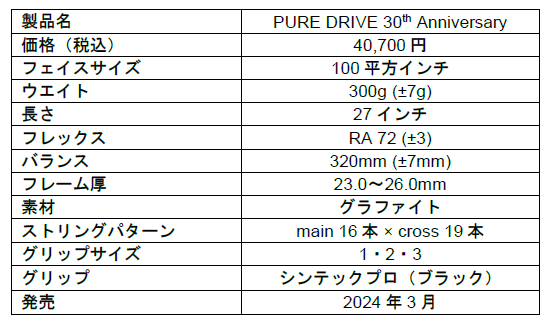 世界で最も歴史の古いラケットスポーツ専門メーカーであるバボラがパワー系テニスラケット【PURE DRIVE】シリーズの誕生30周年記念モデルを数量限定で発表